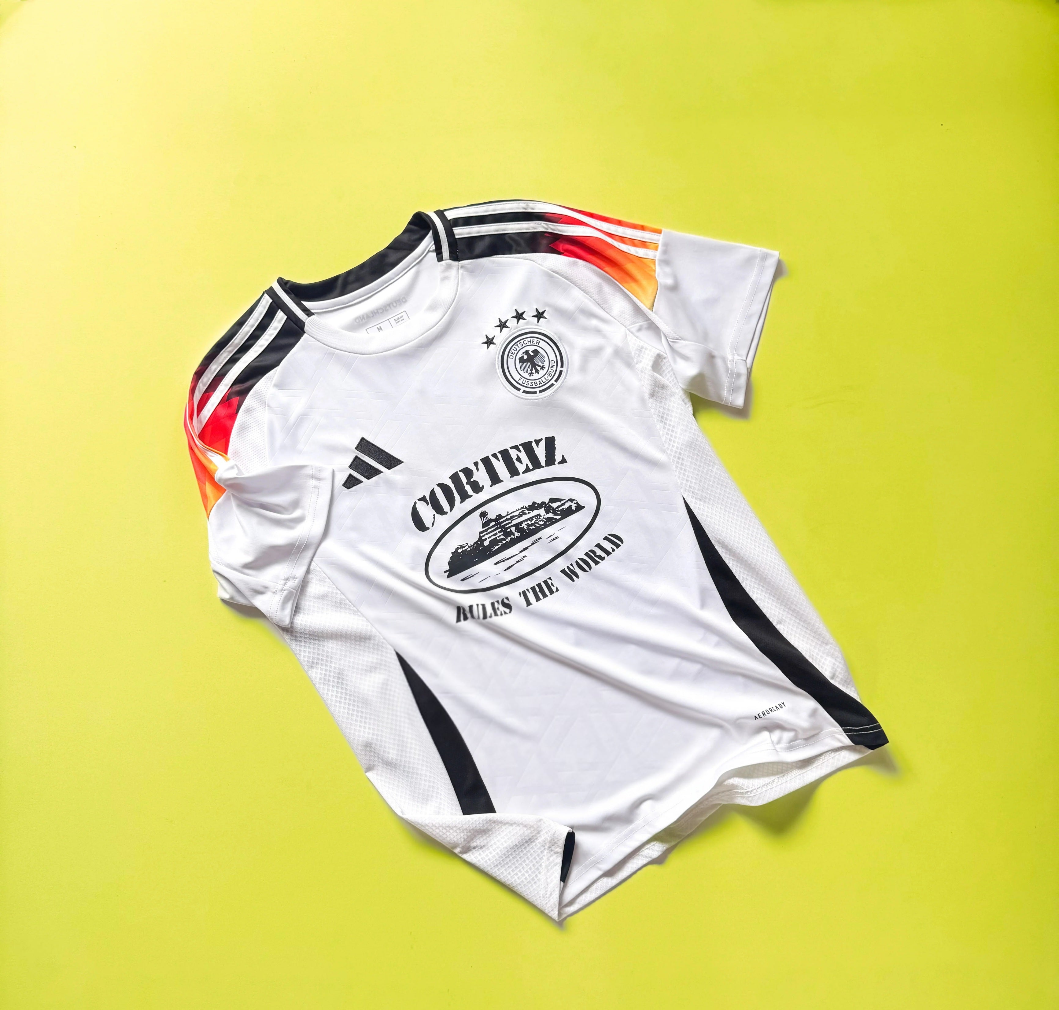 Cette édition exclusive “ALLEMAGNE x CORTEIZ” fusionne le design du maillot national avec l’identité rebelle et street de Corteiz.