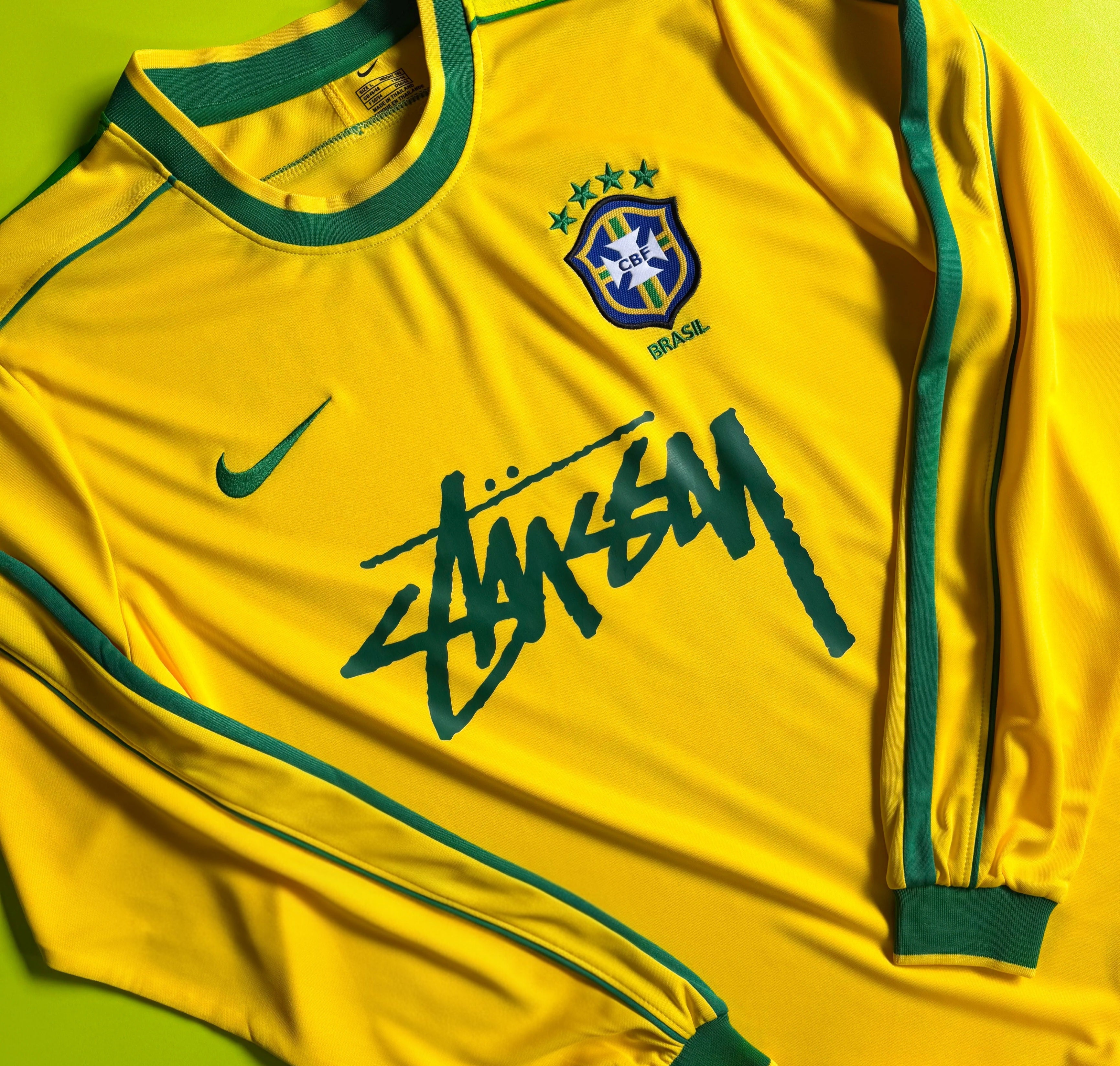 Ce maillot long sleeve combine le flow légendaire de la Seleção avec l’esthétique street rétro de Stüssy.