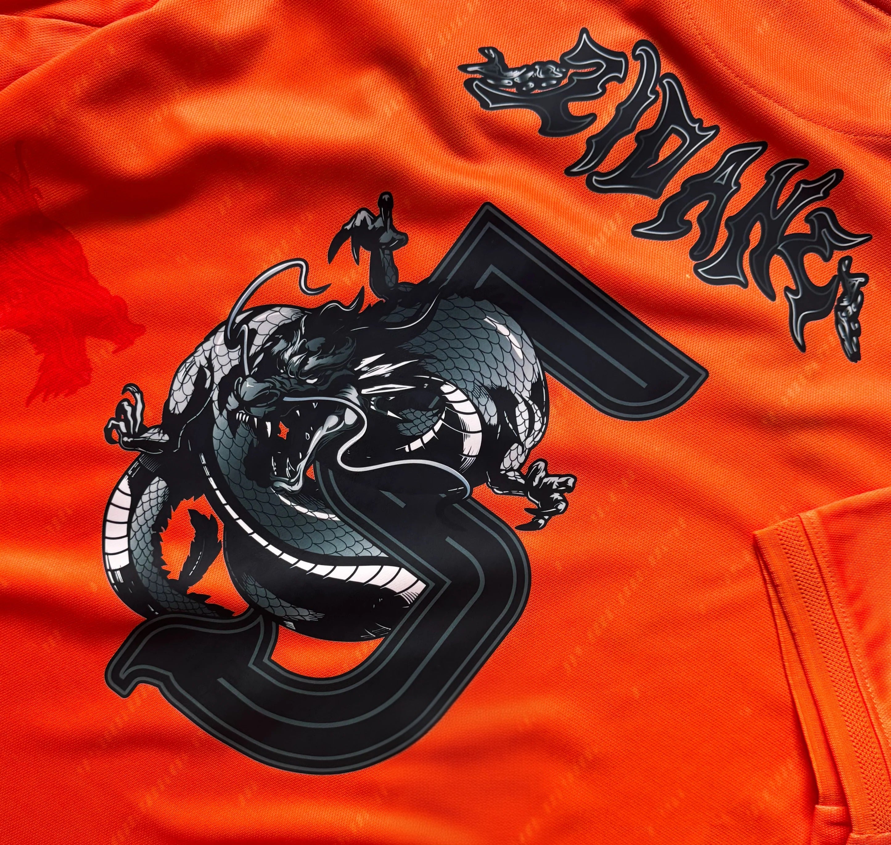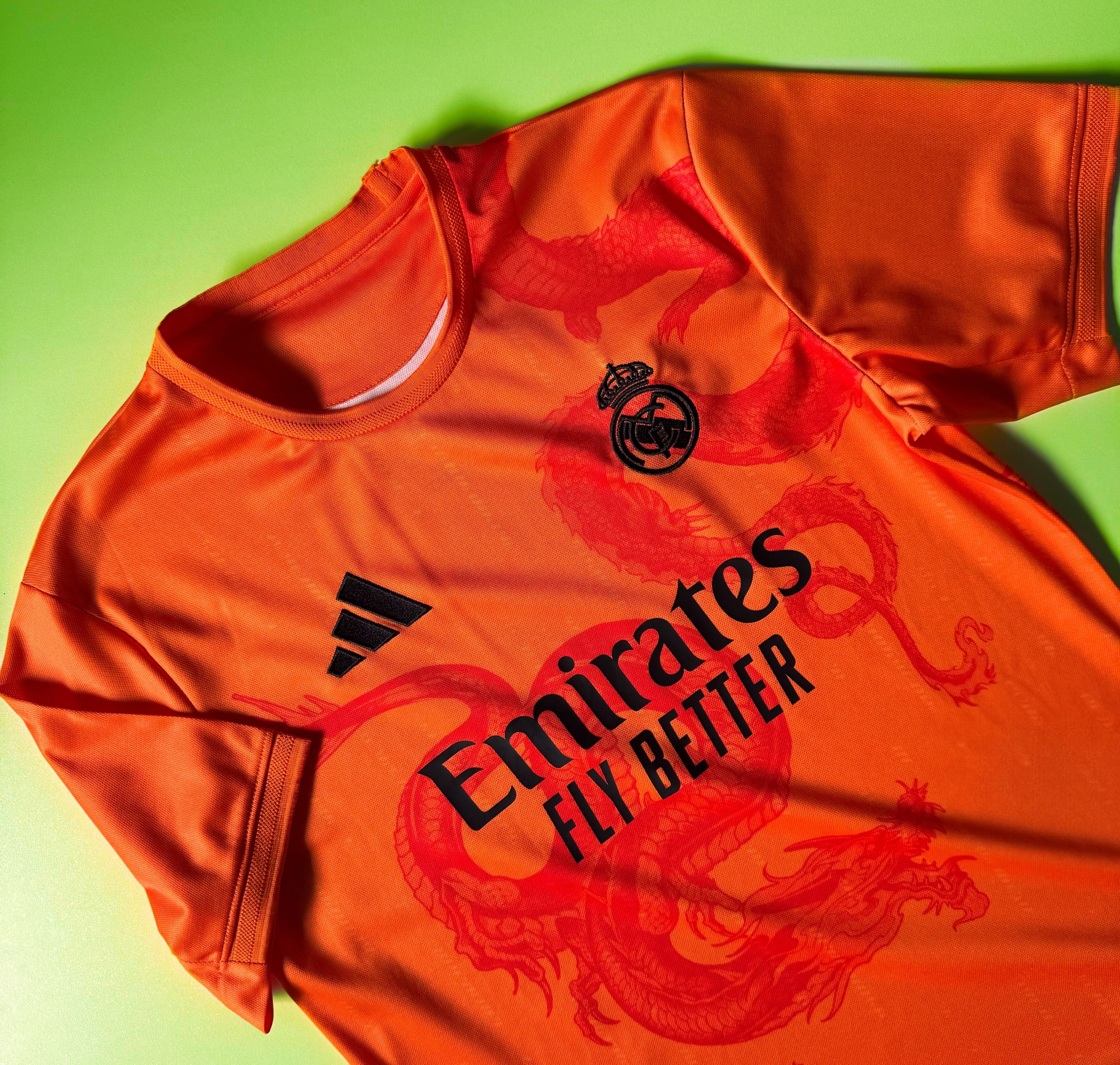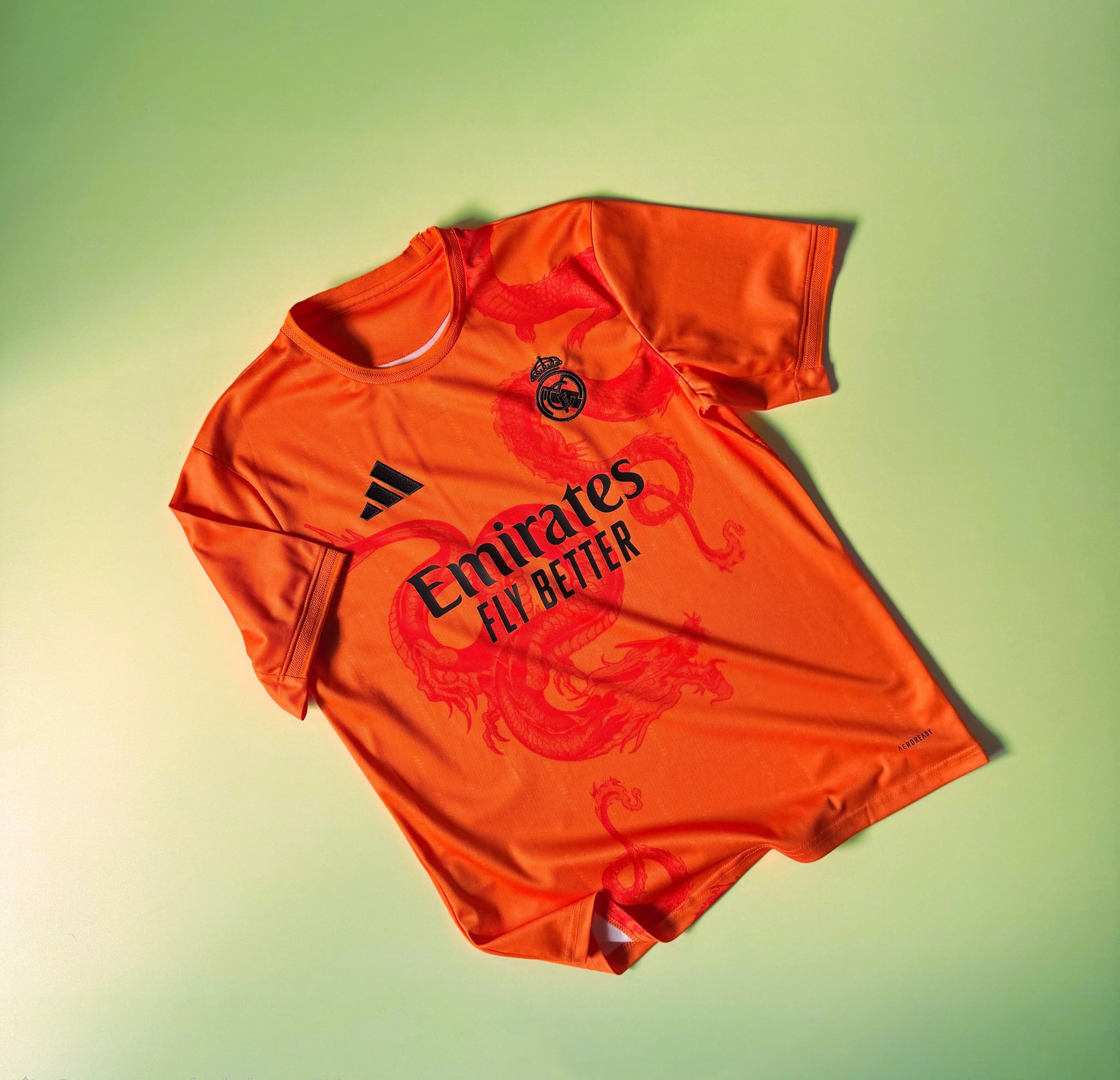 Ce maillot Real Madrid Smoke Dragon Edition réinvente la légende à travers un design orange incandescent, orné d’un dragon de fumée symbole de puissance, sagesse et contrôle absolu.